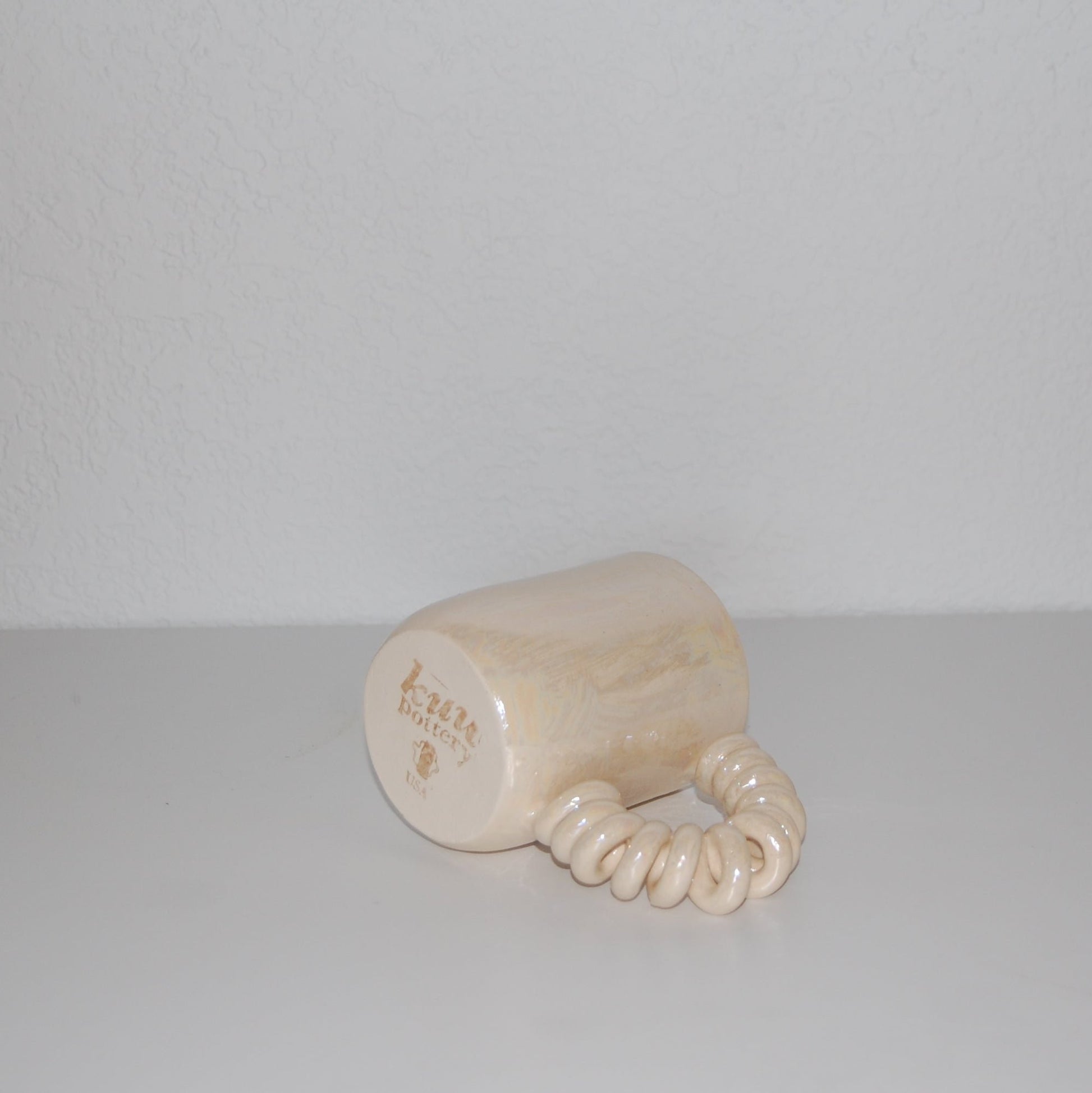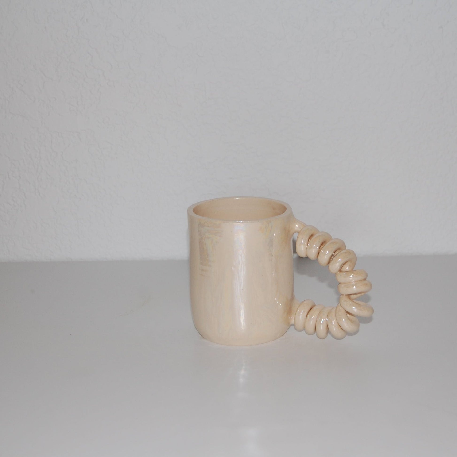 Hand painted mug. Glazed in clear with a mother of pearl glaze on top.