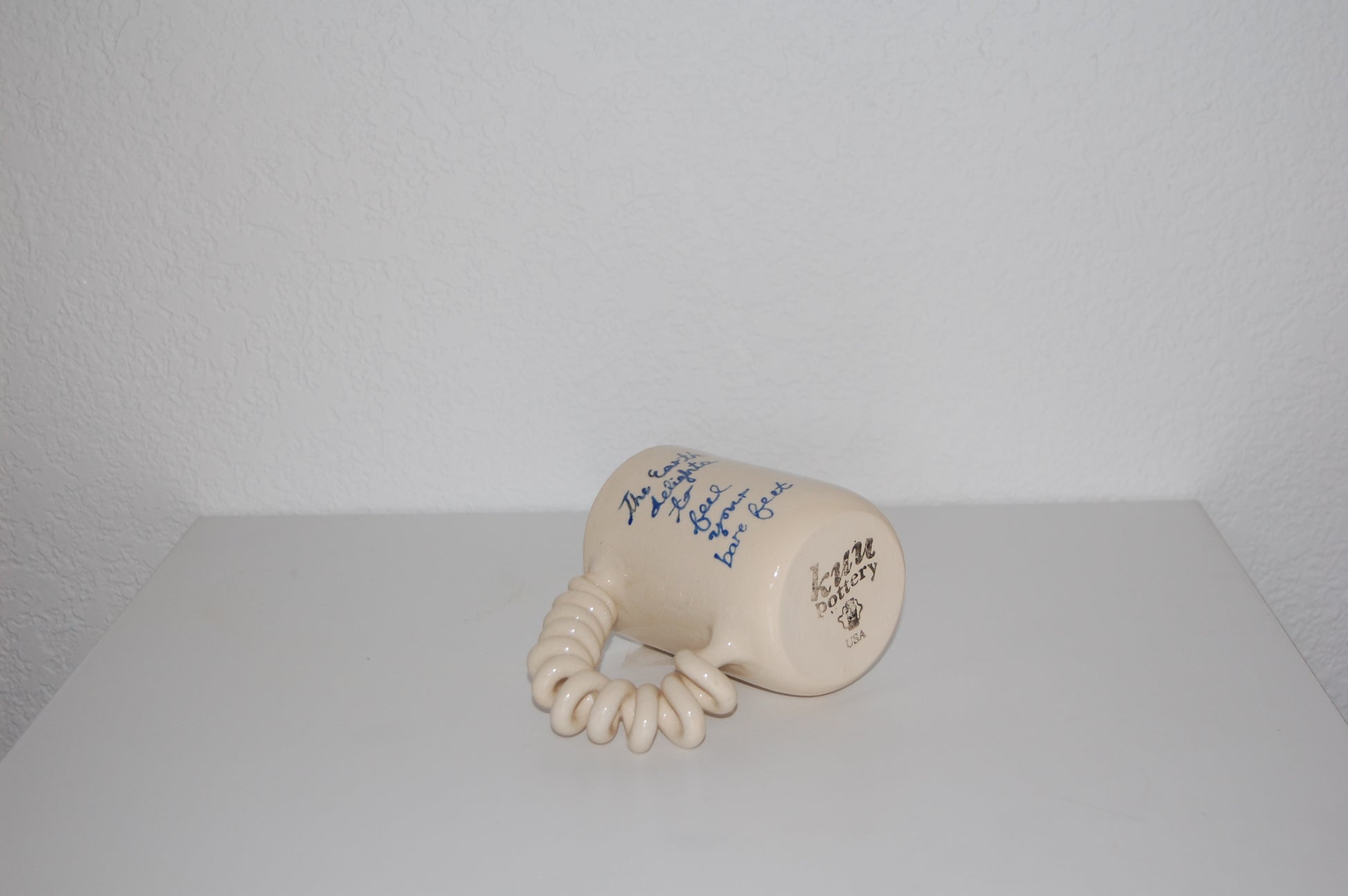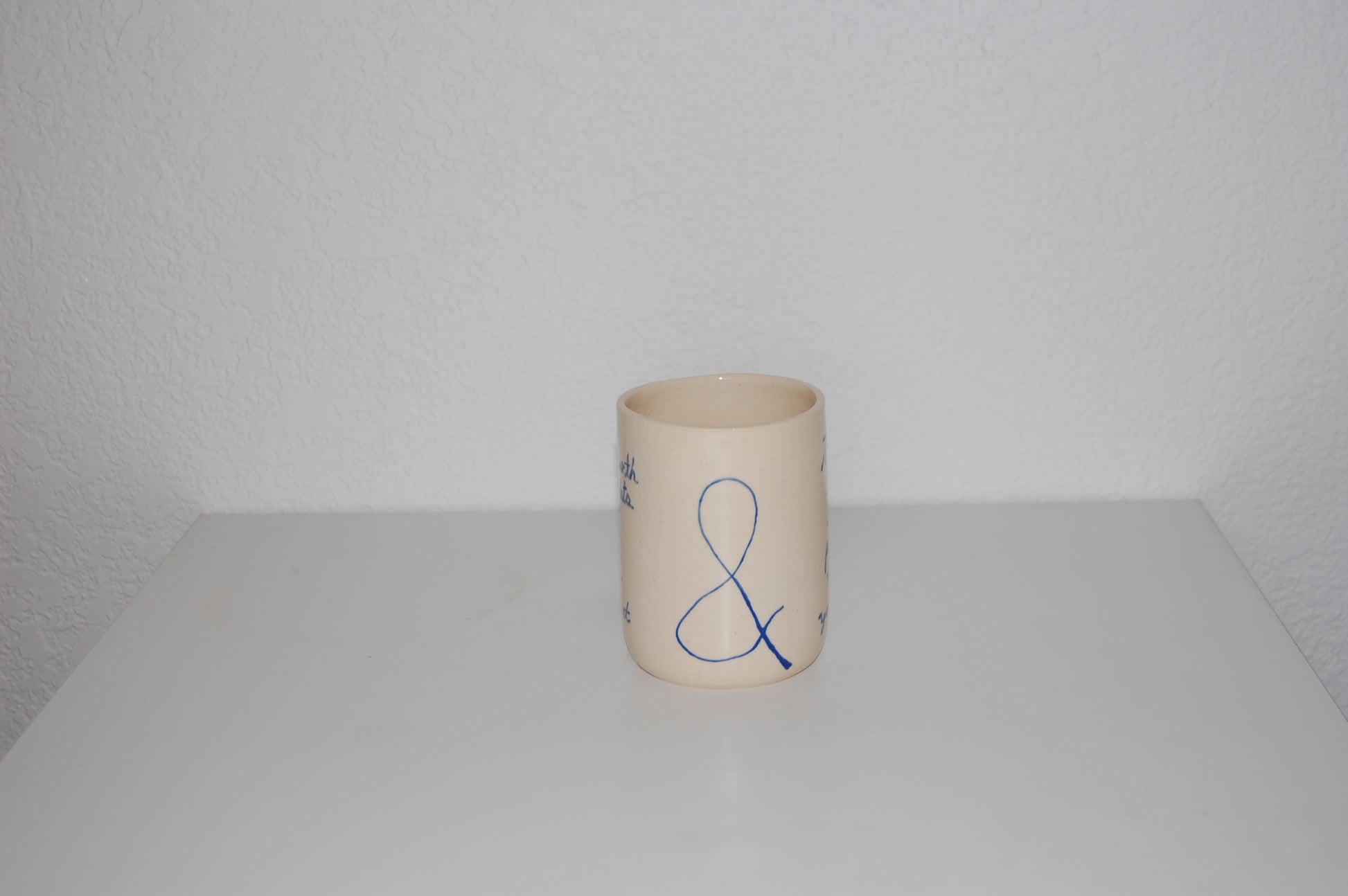 Hand painted mug. Glazed in clear with a matisse handwritten quote from The Prophet by Kahlil Gibran.