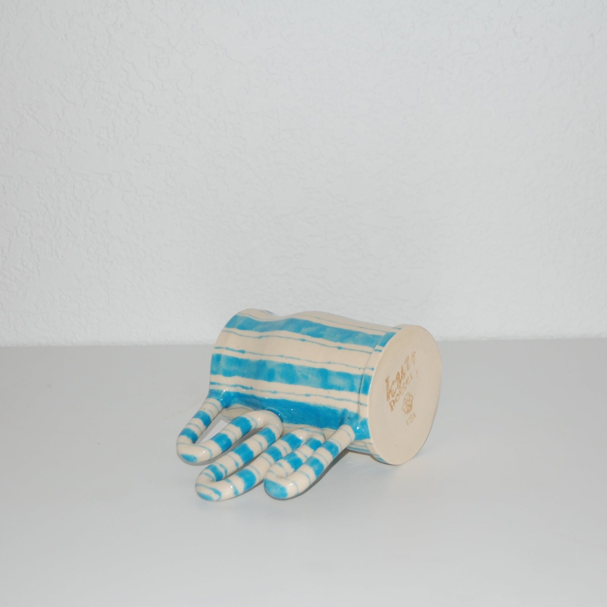 Hand painted mug. Glazed in glossy baby blue stripe pattern.