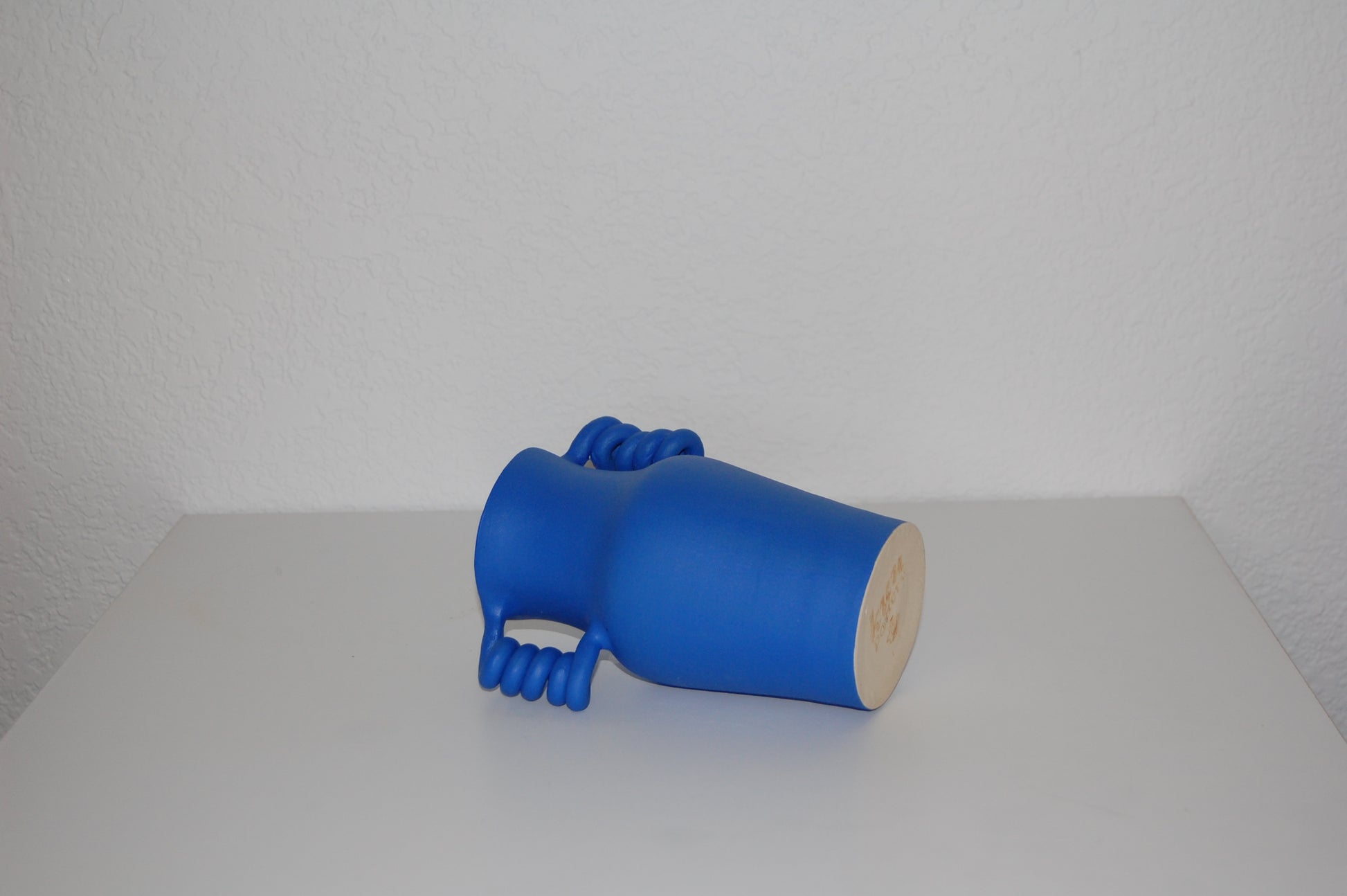A wheel thrown, handmade sculpture using locally sourced white stoneware clay, with coiled handles and painted polka dot pattern using a dark brown matte glaze.