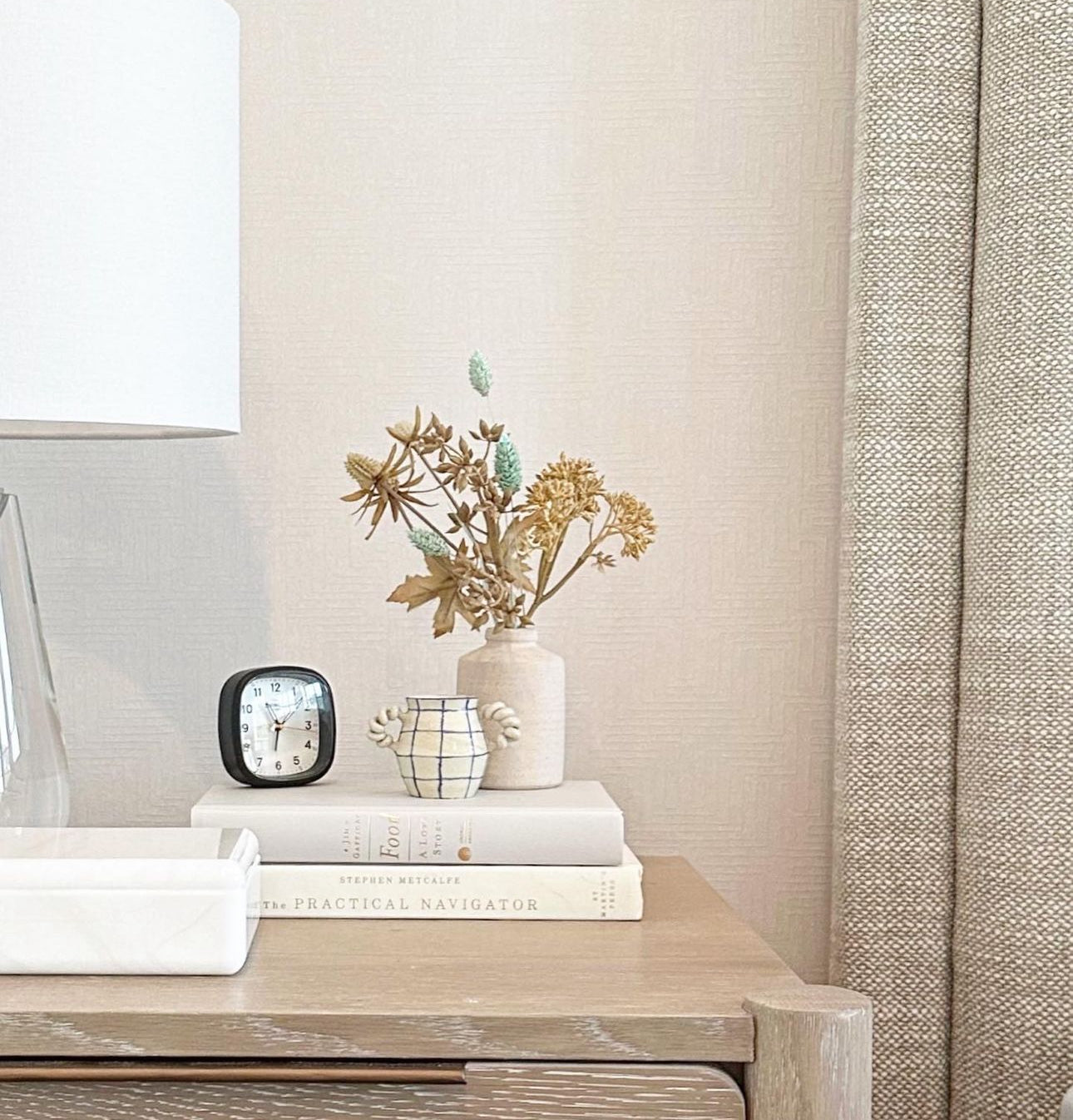 A wheel thrown, handmade sculpture using locally sourced white stoneware clay, with coiled handles and painted with a grid pattern in matisse blue with a clear gloss coat on the inside.