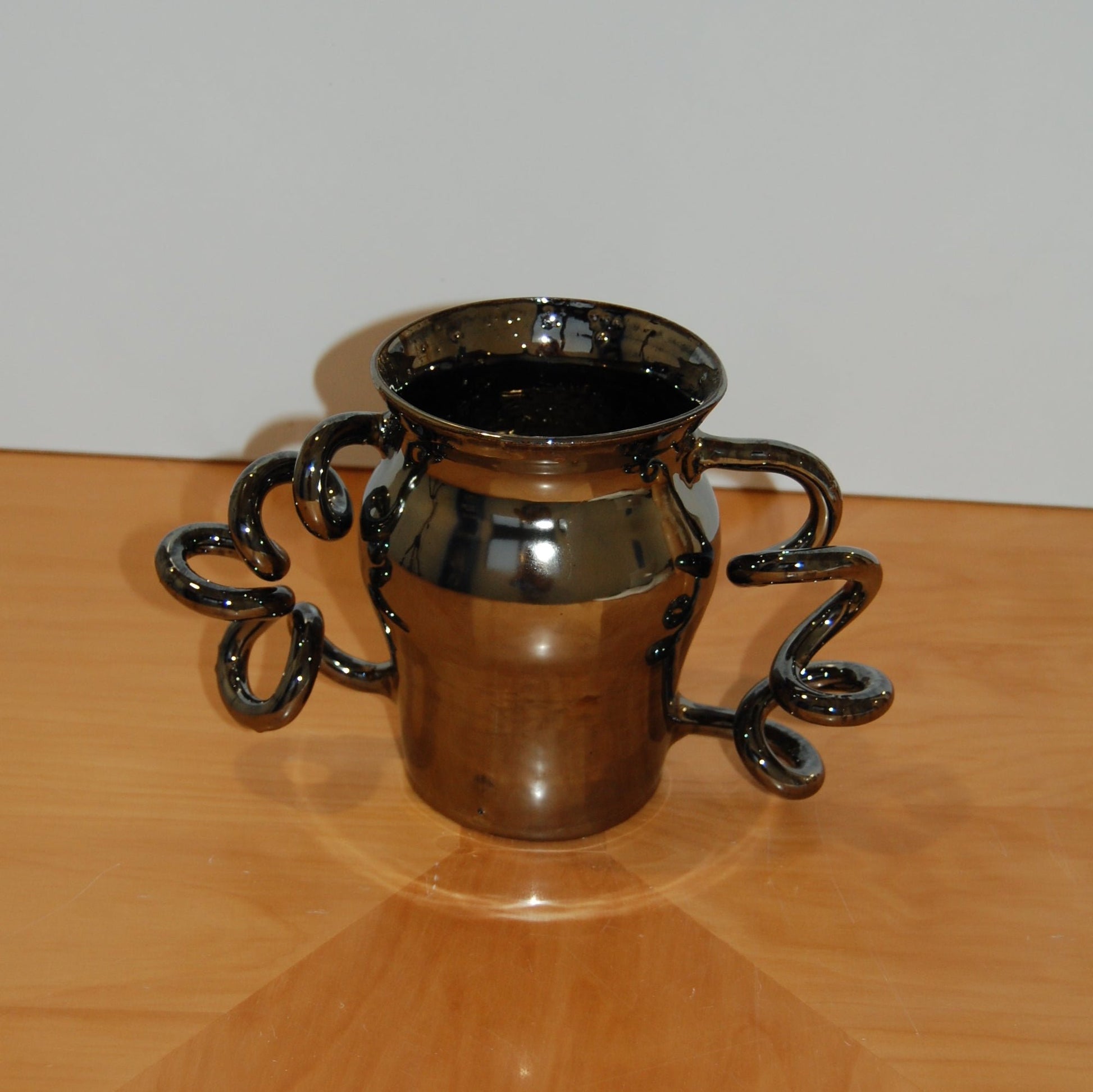 This Boinggg! Vase is glazed with a chrome glaze that has a reflective surface..